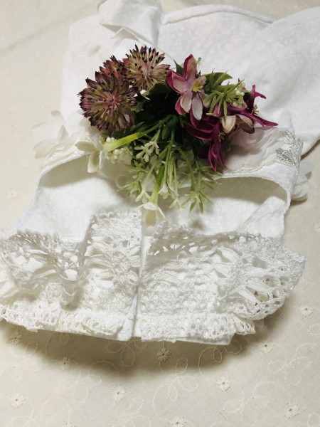 レースやお花を沢山つけてメチャ可愛く出来ました