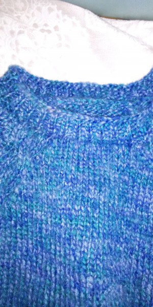 昨年から編み始めて挫折していたセーターが完成しました。サイズを合わせるために何度か編み直しました。肩のあたりに縄模様が入っています。
