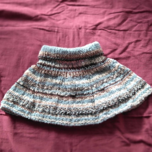 | トップダウンでへちまえりのセーターのようなネックウォーマーを作りました。 色も形も気に入ったのですが、水通ししたら襟ぐりが伸びました。 ネックが暖まらない(T_T) 針を落として、やり直ししてます。 襟のデザインを変えるか迷いましたが、今回はサイズダウンだけにしました。 分散増し目も自分の好きなバランスが分かってきました。 作りながら別のアイディアが浮かんだので、お正月に試してみたいです。 |