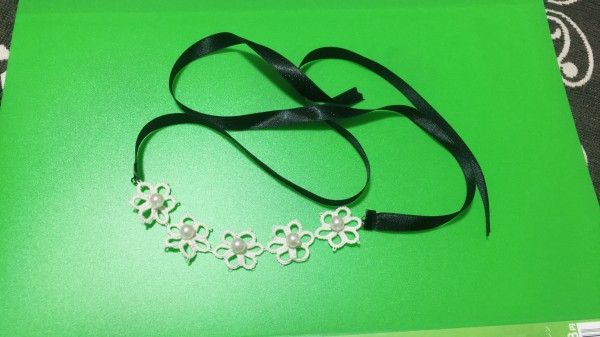 ちまちまタティングレースの練習をしていたら、娘からのご要望でチョーカーを作りました。