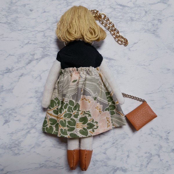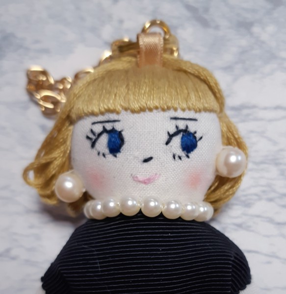 | ドールチャーム。 ぱっつんボブの女の子。 刺繍で前髪を作り、顔の刺繍も表情をつけてみました。 |