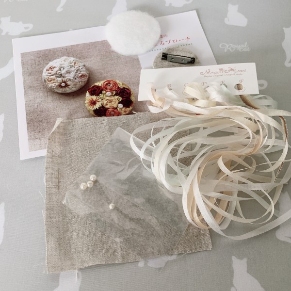 刺しゅうするたびに、一輪一輪リボンの花が咲いていくなんて、素敵ですね!刺しゅうする前のリボンにもときめいてしまいます。