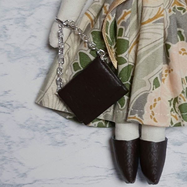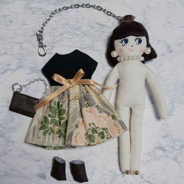 | 着せ替えドールチャーム。 前作のぱっつんボブの女の子を着せ替えタイプにしたもの。 靴、バッグ、服が着せ替え可能。 バッグチャームとしてつける時、靴とバッグは落ちやすいので無しでもいけるように足先に飾りビーズをつけた。 |