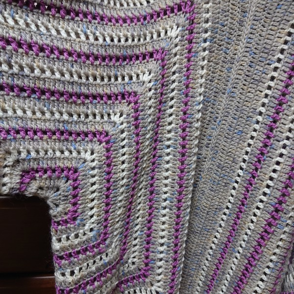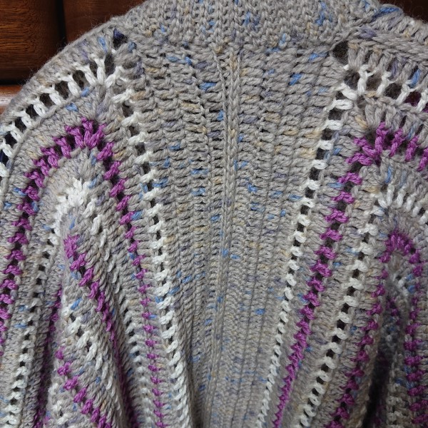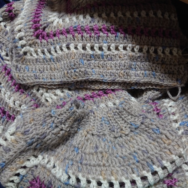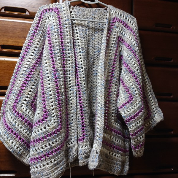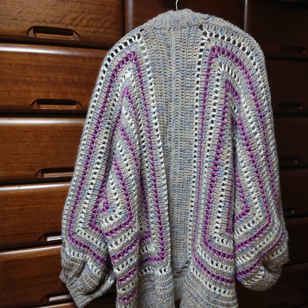 | 六角形を2枚編んで背中で繋いでカーディガンに | |