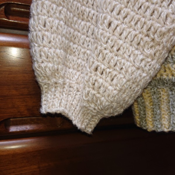 袖を編み始めたのはいいが、立ち上がりを目立たなく編んだせいでどこが始まりだったか分からなくなった…