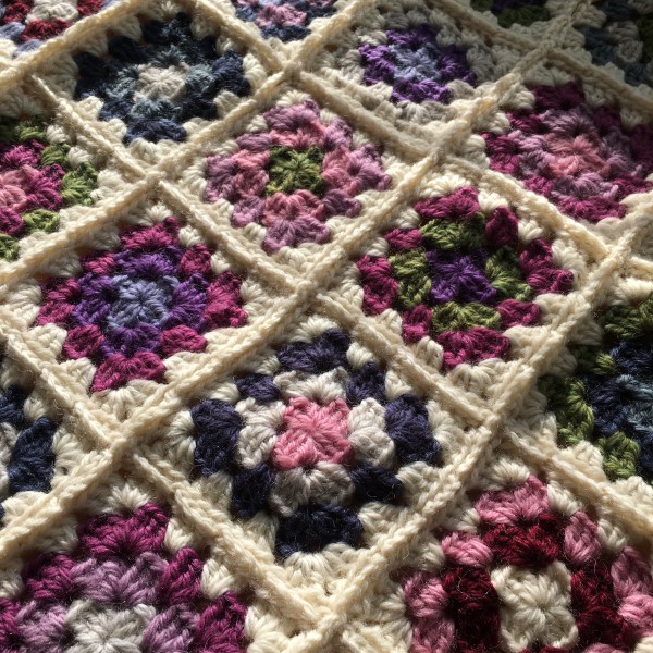 何色か買い、しりとりをするように作りました。周りを生成りにするとまとまるかな?