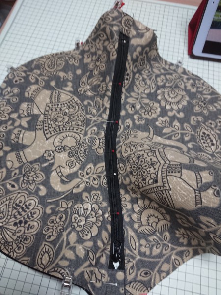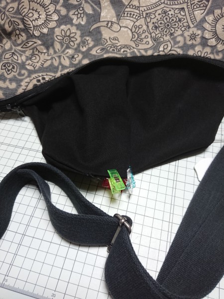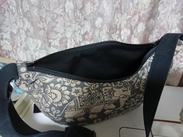 ムーン型ショルダーバック… ファスナーをアールに付けるのに気を付けました。これも返し口からどんでん返しですが…テープ縫い付けが厚くなるので逃げないように気を付けました。
