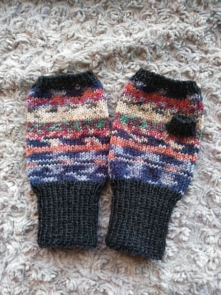 あまり毛糸を使いました。洗濯機で洗える毛糸で指出し手袋。