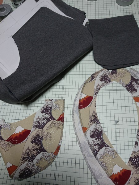 ニットは伸縮性が少ないもので見返しには接着新を貼って…