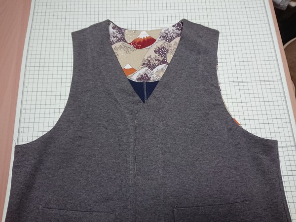 | 春に向けて…普段使いが出来るベスト 表はニット素材、見返しは綿にして落ち着かせました。 見返しが派手すぎたかなぁ~ さあ、後はボタンホールとボタン付け… |