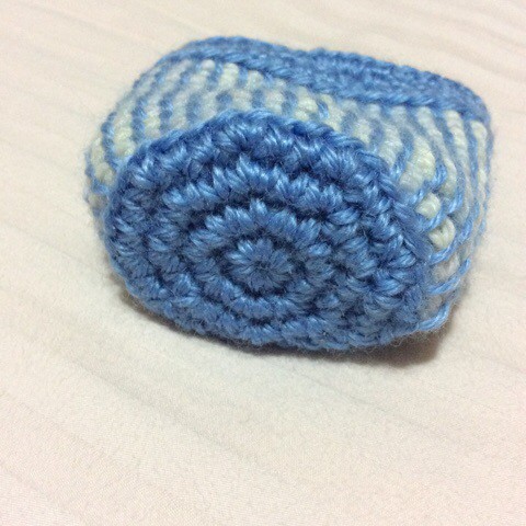 ブルーとホワイトの毛糸で、アフガン編みのミニバッグを作りました。