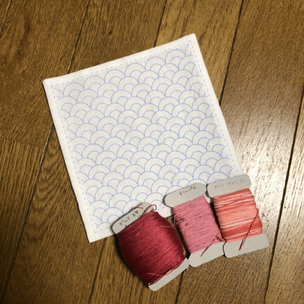 オリンパス、ダルマ、セリアの刺し子糸を使って。