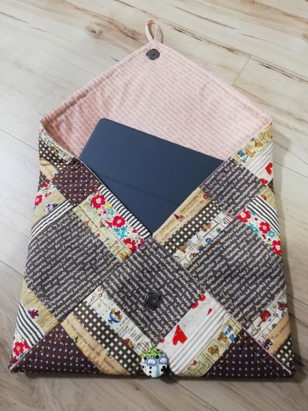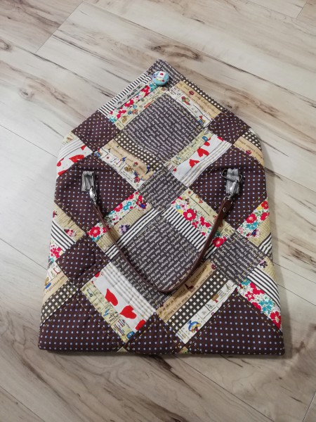 YouTubeで見たA4サイズのかばんを作ってみました。今回初めてくるみボタンを作りましたが、とても楽しかったです。