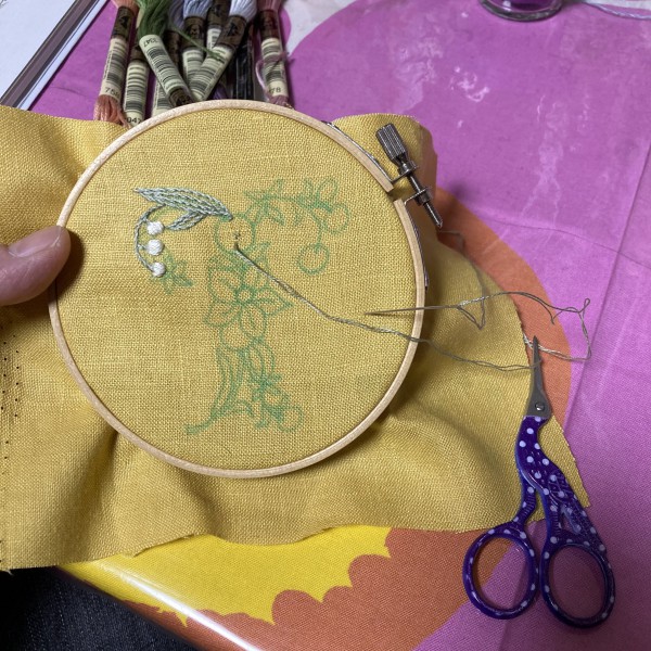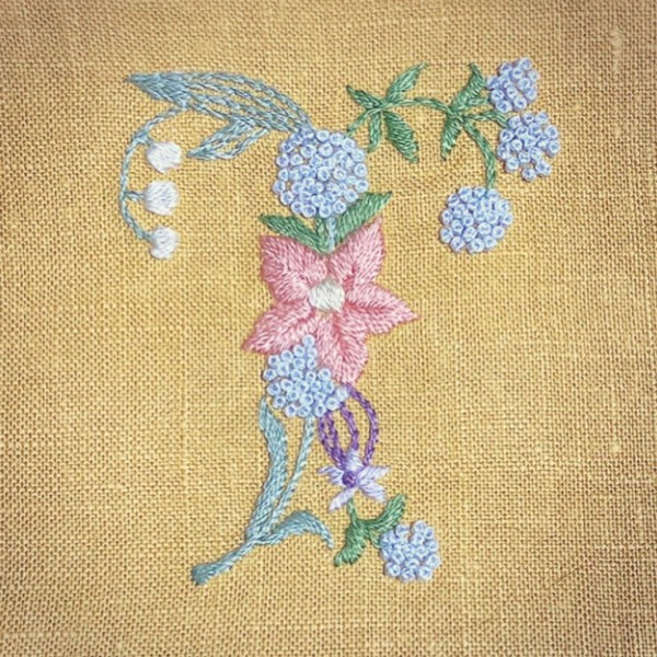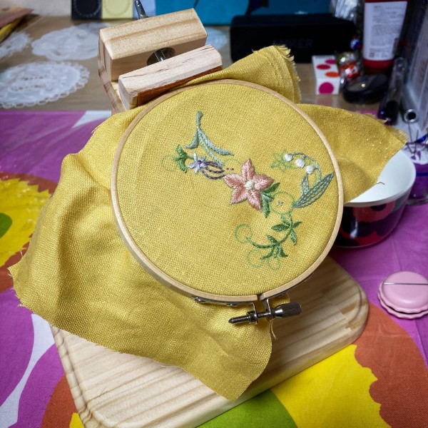 蓬萊和歌子さんの刺繡の贈りものという本から、少しお花と色味を変えて刺しました。