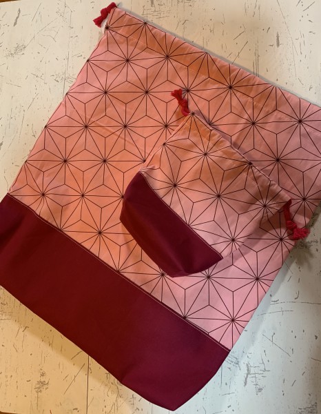 入園・入学用4点セットです。裏なしは出来上がりが早いです。持ち手と紐はビビットピンクを合わせました。