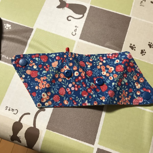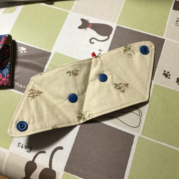 主婦のミシンの型紙で 作りました。縫うのは直ぐに出来たんですが スナップが足りなくて今日になってしまいました