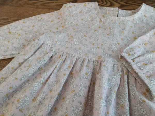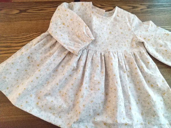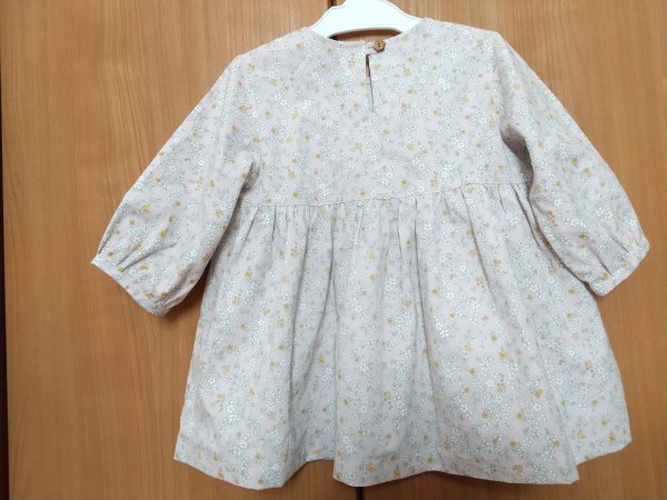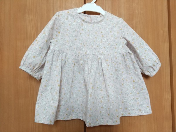 | くすみピンクの小花柄で、長女にパフスリーブのチュニックを作りました。 七分袖で、重ね着をすれば秋~春まで着られそうです。 初挑戦の行程がいろいろありましたが、満足いくものができました。 |