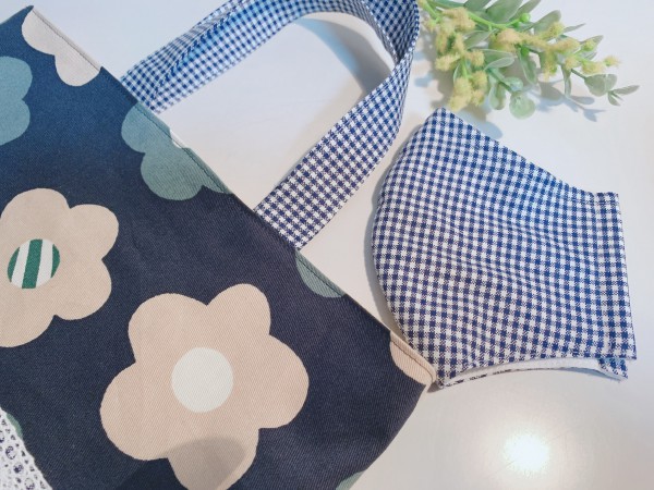 ワンちゃんのお散歩バッグ、ワンちゃんのバンダナとmamaのマスク