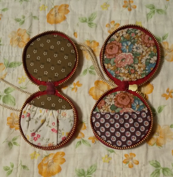 マカロンコインケースのアレンジで、内ポケット付き。指輪やピアス、薬、小銭などを入れて。
