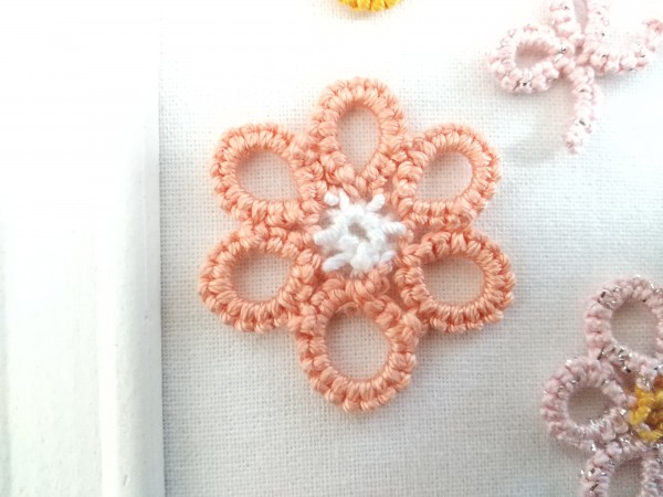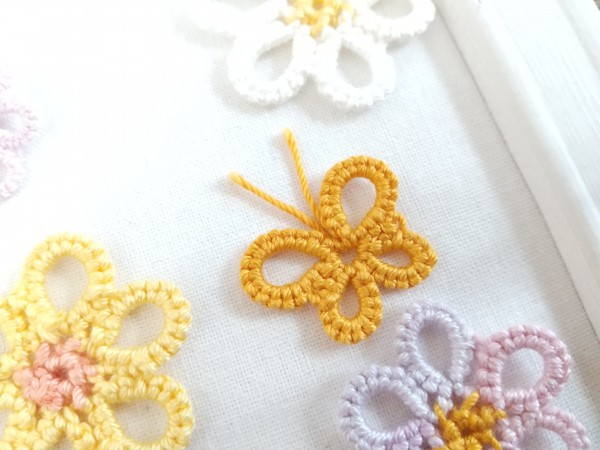 | タティングレースで編んだお花のモチーフです。 春から幼稚園に通う次女の持ち物に目印として縫い付けます。 色の組み合わせを見るために、いろんなパターンで編んでみました。 シャトルに余った糸で、リボンと蝶々も。 普段は白か生成の40番糸を使用しいるので、久しぶりの太糸&カラフルで楽しかったです。 |