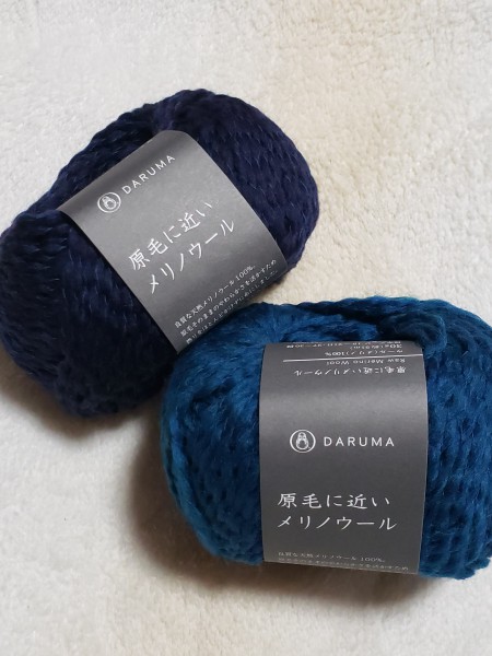 | 使用糸 | 原毛に近いメリノウールColorNO.14(濃紺)・NO.7(ピーコックブルー) /Daruma 横田 |