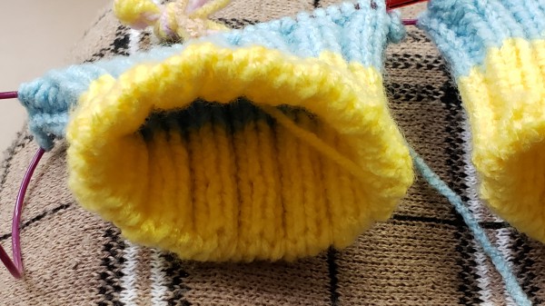 黄色から始まって水色に糸の色が変化してきたのが楽しい。