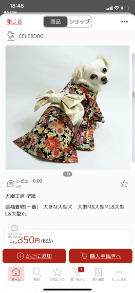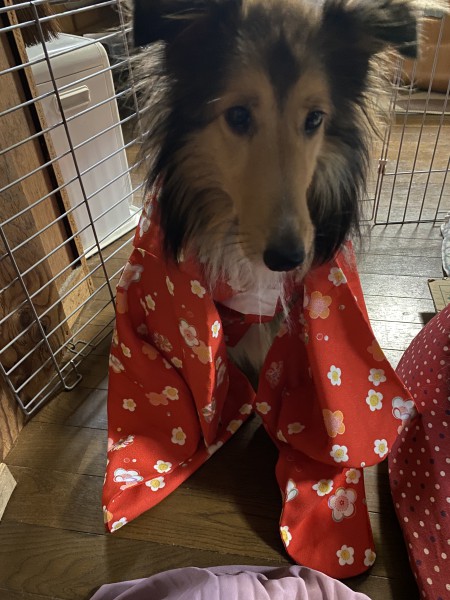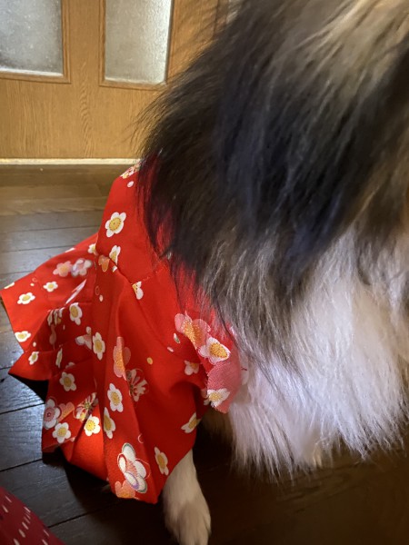 三才御祝い着から、犬の着物作りました。簡単かと思ったけど、構造が違うから結構大変で、結局型紙を買ったら、納得しました