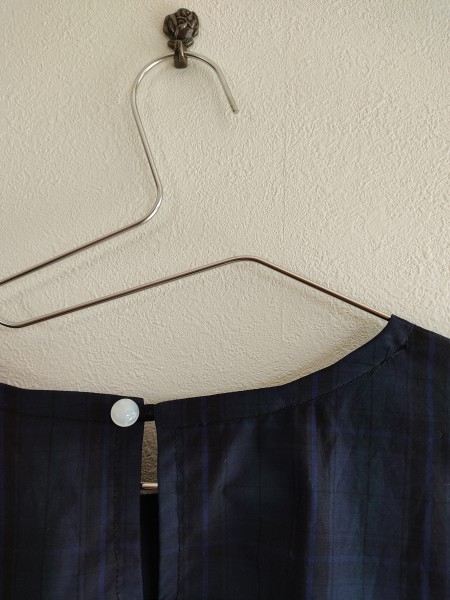Aラインのシンプルなワンピースです。数年前にスワニー鎌倉さんで購入したブラックウォッチのタイプライターで作りました。