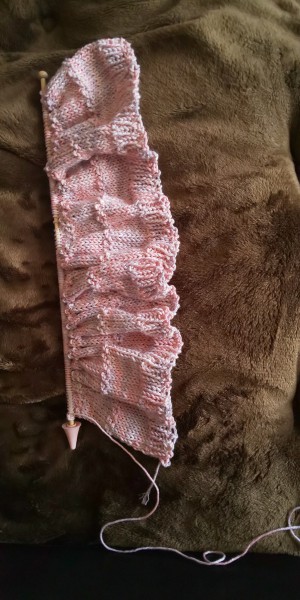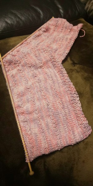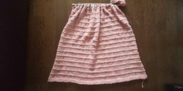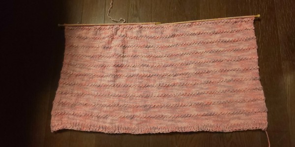 40段ほど編んで、やっぱりもう少しゆとりがほしいと思い、目数を増やして一から編み直しました。