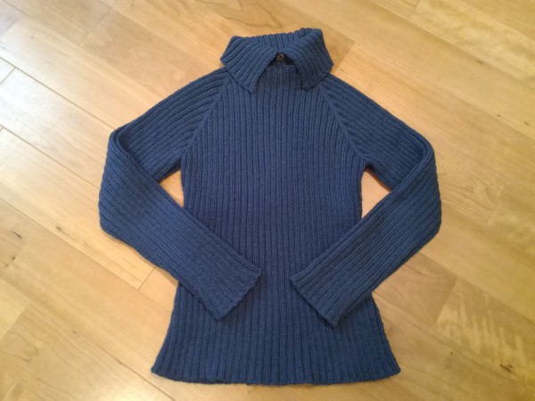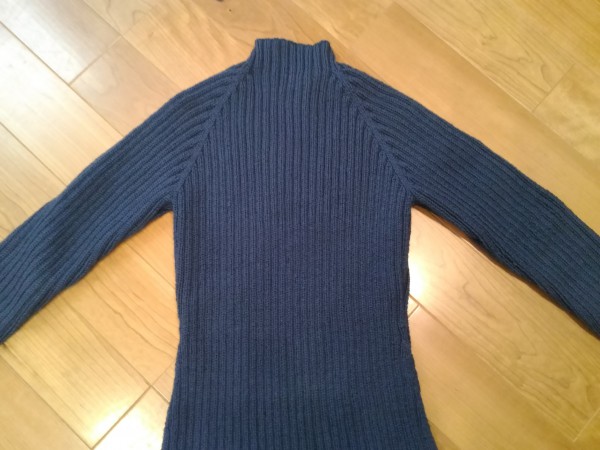 | 全体を2目ゴム編みで編んだセーターです。衿は少しハイネックにして、別で付け衿のようなネックウォーマーを編みました。たた&たた夫さんのリブラグランセーターのパターンを参考にしています。 ひさしぶりにこのパターンを編みましたが、やっぱり暖かくて好きだなーと改めて感じております。 |