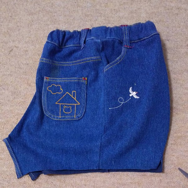 子ども用デニムパンツを、リメイクしてショルダーバッグにしました。