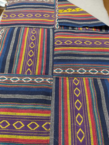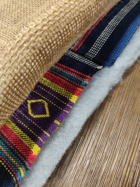 猫ちゃんのマットです。100均のハギレ、キルト芯、ジュートでパッチワーク風に作成。気に入ってくれるかな?