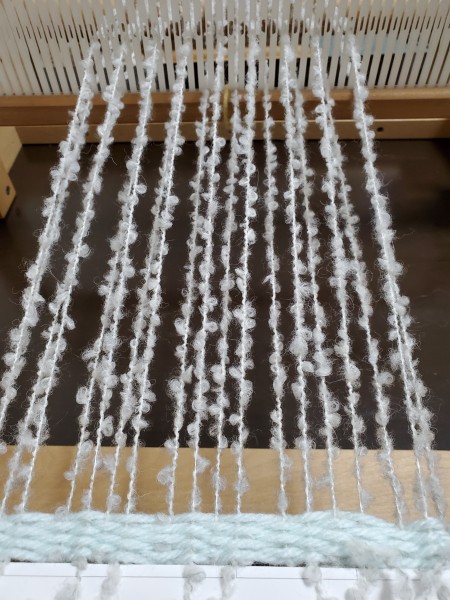 織りあがったのですがちょっとイメージが違ったのでたて糸を張りかえてもう一度やり直しています