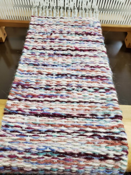 たて糸を張ったらどんな風にできるのか見たくてどんどん織り進んでいきます