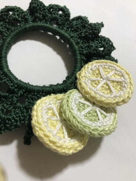 シュシュ本体は1日で作成。 レモンは明日以降作成予定