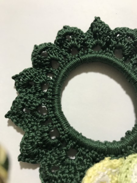 そうですよね。もう少し濃い黄色も本物っぽくていいと思いましたけど、持っているレース糸で作りました。