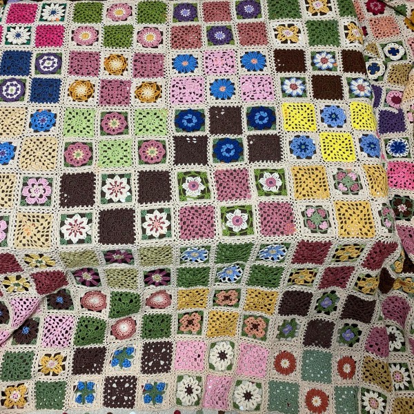 何年も買い溜めてあったキット、やっと完成させることができました。小さいモチーフ合計480枚を繋ぎ合わせ、190×240cmのこたつカバーに。