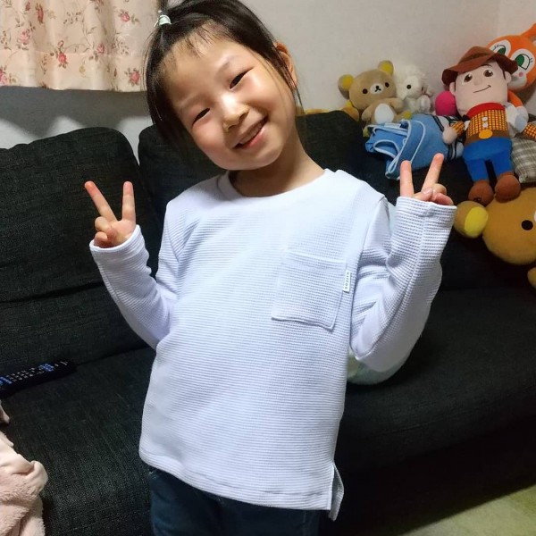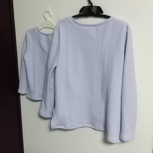 | ◆お揃いワッフルカットソー◆ 前回作った型紙で。 今回のはパフワッフルです。 やっぱり、柔らかいからか着心地バツグン! ポケットも付けて、カジュアル感プラス。 衿はスパンフライスにて。 一度作ったパターンだったので、4時間位で2着出来ちゃいました! #みんなのカットソー |