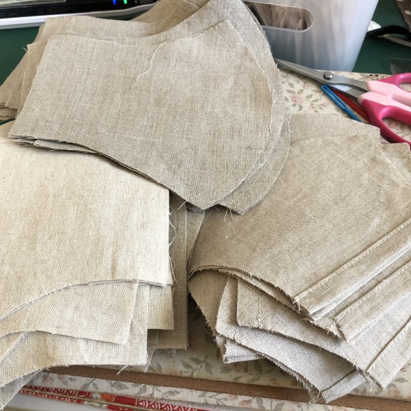 数日間かかって生地の裁断をして、 各パーツを作って、コバステッチをかけて、このあと3パーツを合わせて完成形へ。