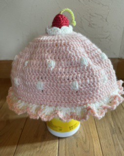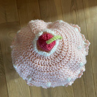 1、2歳用のサイズのはずが小学生用くらいのサイズになってしまいましたが、まっいいっかです。アイスクリームキャップです。