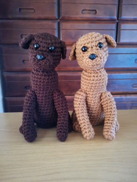 | 娘が飼っているトイプードルそっくりなあみぐるみをつくりました。 眞道 美恵子さんの「抱っこしたくなるあみぐるみワンコ」より 高さが35cmほどあり 本当に抱っこしたくなります。 今回初めての植毛にチャレンジしましたが 何とか形になりとても勉強にもなりました。 もう1体は時間が出来たらまた続きを作りたいと思います。 |