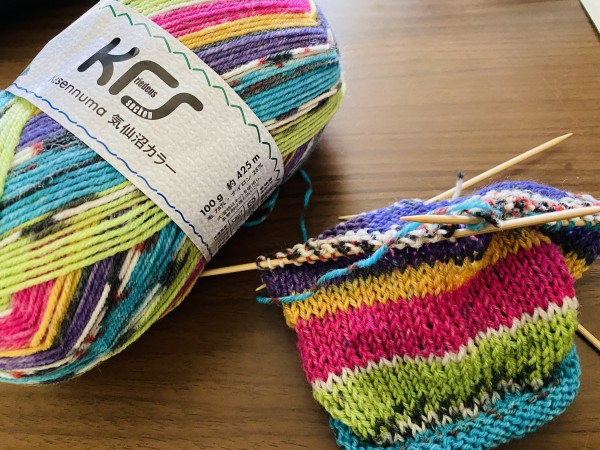 気仙沼カラーの靴下は、見ているだけで元気になりそうな綺麗なカラーですね。