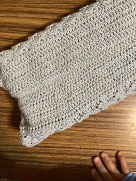 パーツを編んでいって縫い合わせたので糸始末が多かった。