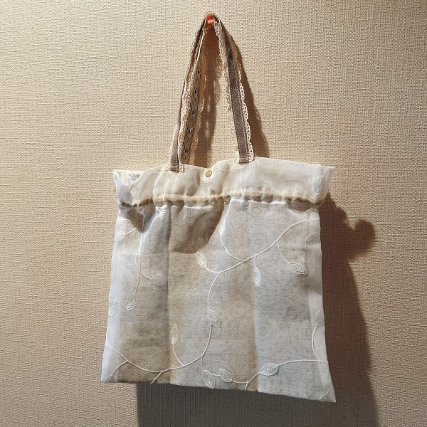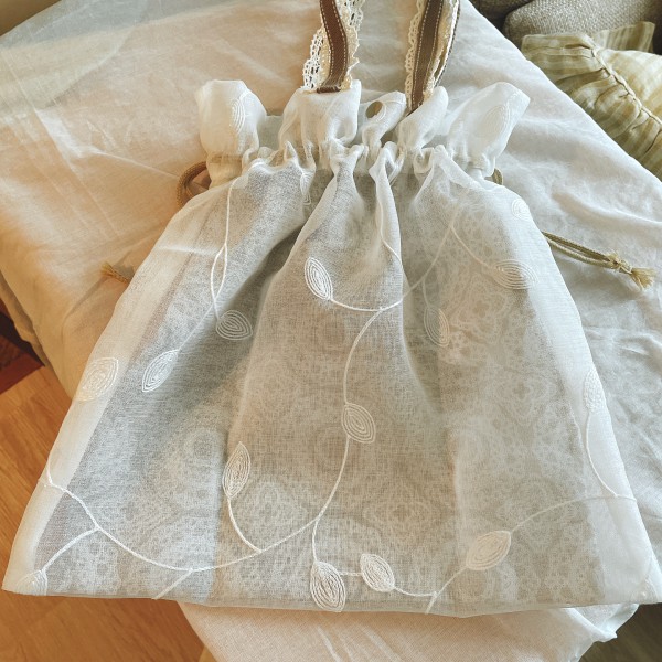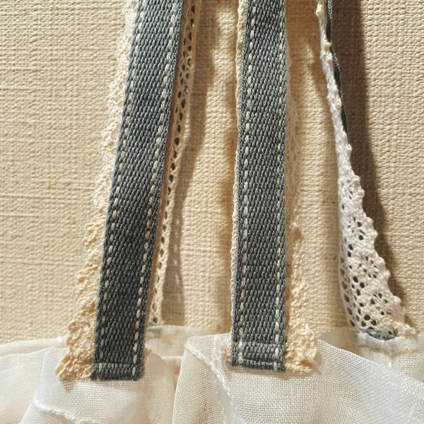 カラーボックスにつけるカーテンと手ぬぐいを本体として使いました。すべて100均で材料は購入しました。製作費は1つあたり500円弱です。中の袋は取り外しができます。