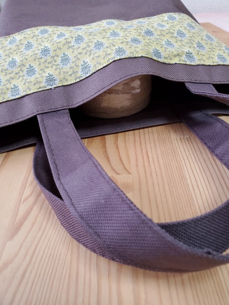 100均のバッグにソレイアードの生地を上からミシンで縫い付けました