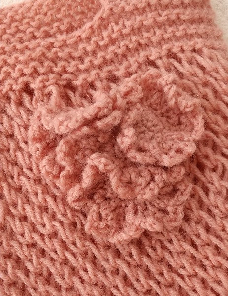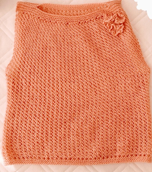 前後同じの真っ直ぐ編みが基本ですが前身頃の幅を広げています