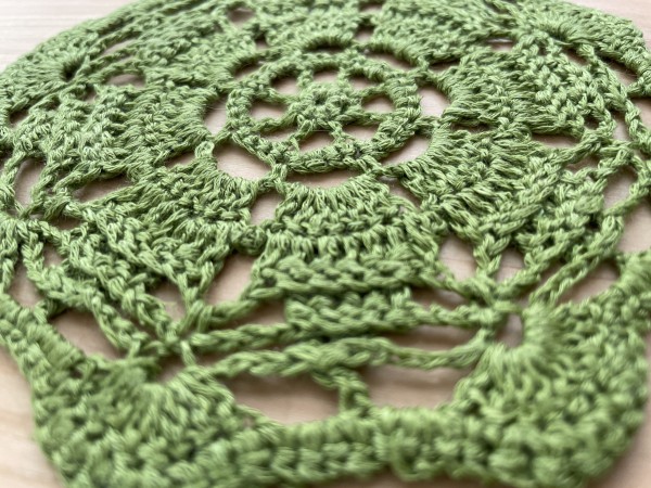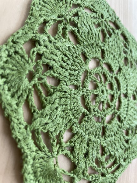 オリジナルです。気ままに編んでいたらパイナップルな感じになりました。今度は縁をもう少し豪華にしようかな。アイロンしたらぺったんこになった。