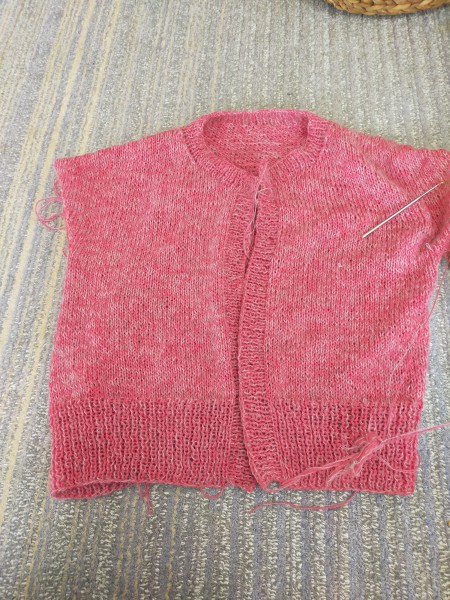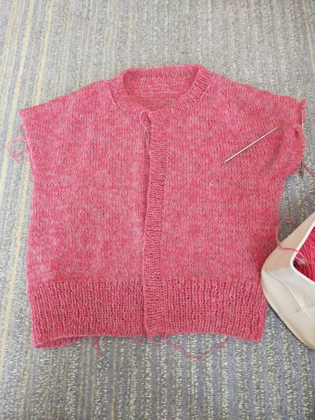 近所に出来た毛糸屋さんの編み図で。毛糸も見本と同じものを選びました。