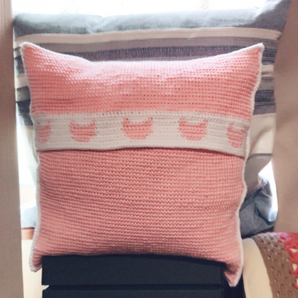 表は細編み、裏はアフガン編み(無地部分)とかぎ針編みの混合。ゲージを合わせるのに何度もやり直ししました。