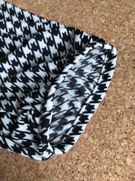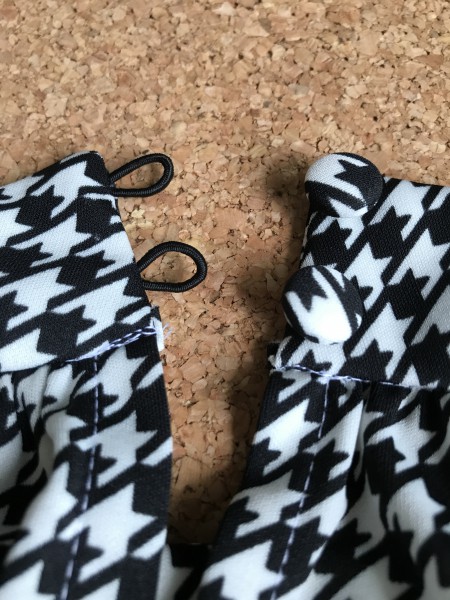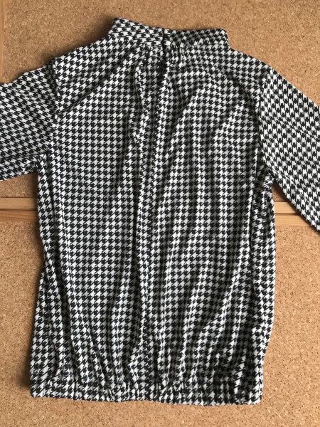 衿ぐりと袖口にギャザーをよせて、裾にガムテープを使用